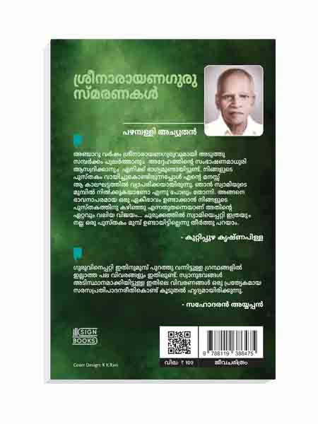 | details | ശ്രീനാരായണഗുരുവിന്റെ നേരിട്ടുള്ള ശിഷ്യരിൽ ഒരാളുടെ ഗുരുവുനെപ്പറ്റിയുള്ള ഓർമ്മകൾ. ഗുരുവിനെപ്പറ്റി ഇതിനുമുമ്പ് പുറത്തു വന്നിട്ടുള്ള ഗ്രന്ഥങ്ങളിൽ ഇല്ലാത്ത പല വിവരങ്ങളും ഇതിലുണ്ട്. സ്വാനുഭവങ്ങൾ അടിസ്ഥാനമാക്കിയിട്ടുള്ള ഇതിലെ വിവരണങ്ങൾ ഒരു പ്രത്യേകമായ സരസപ്രതിപാദനരീതികൊണ്ട് കൂടുതൽ ഹൃദ്യമായിരിക്കുന്നു. – സഹോദരൻ അയ്യപ്പൻ. |